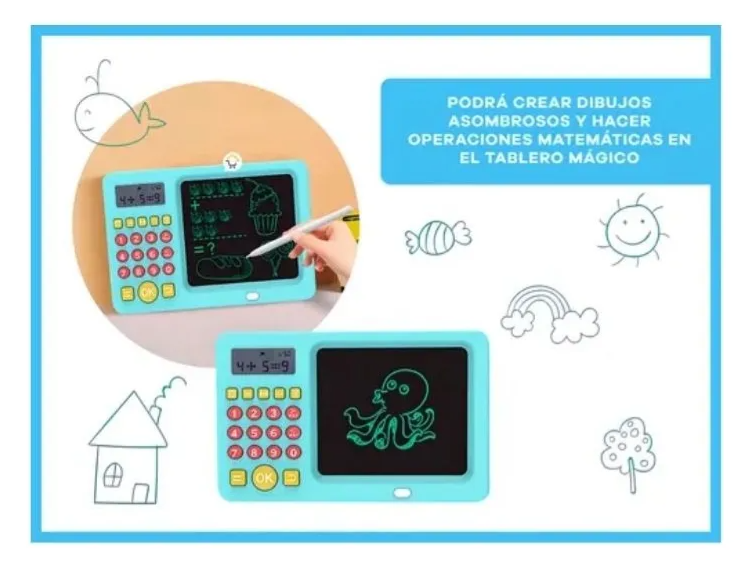 La Pizarra Mágica Educativa con Calculadora para Niños es el compañero ideal para el aprendizaje y la diversión. Diseñada para estimular la creatividad y el pensamiento lógico, esta pizarra permite a los pequeños explorar su imaginación mientras aprenden a sumar, restar y resolver problemas matemáticos de manera interactiva.